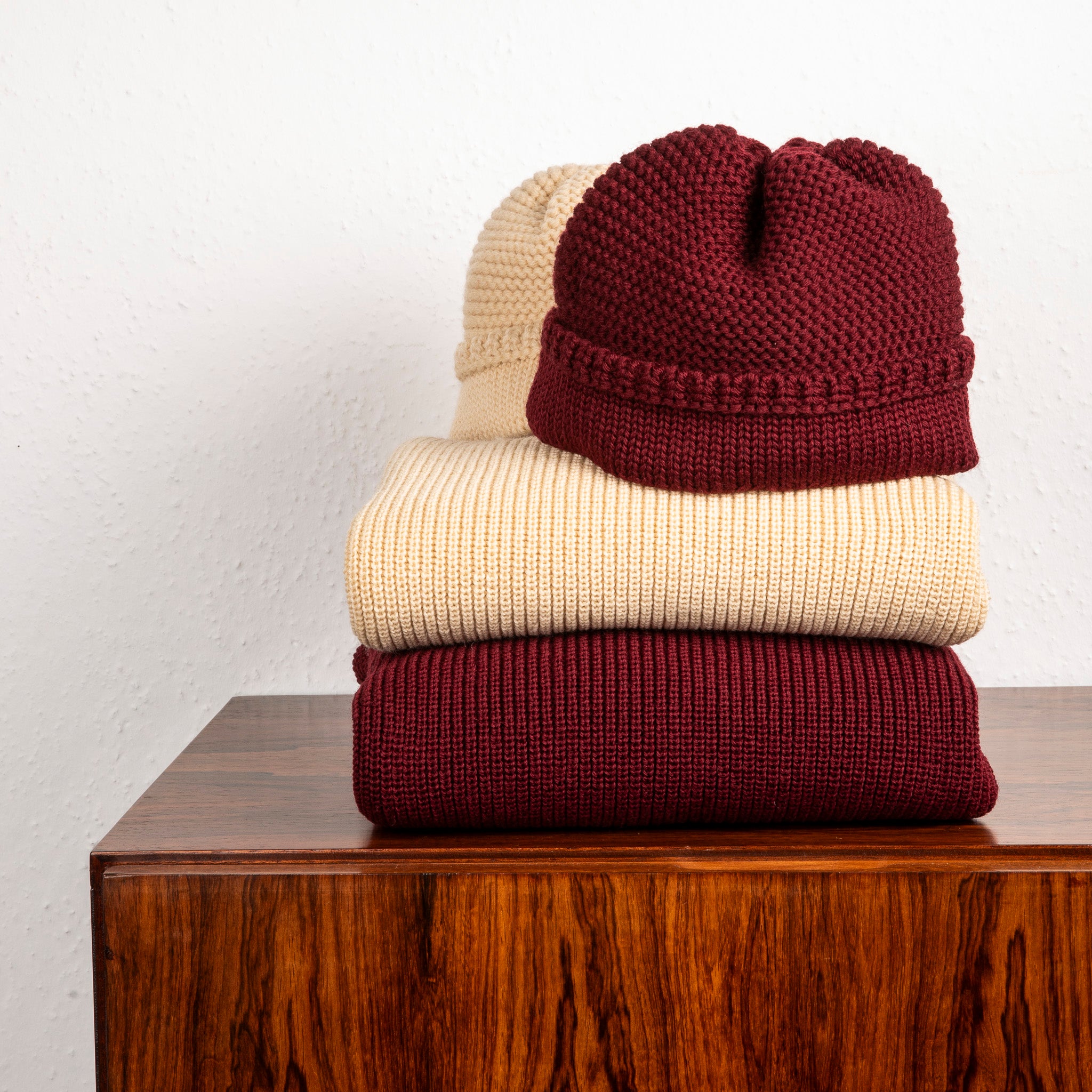 The Elder Statesman 100% Cashmere Watchman cap in Navy/Red